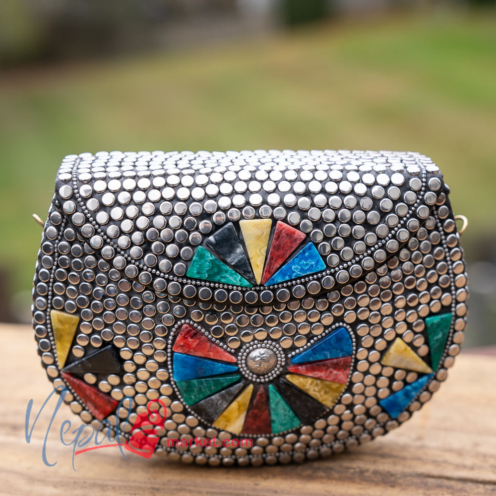 Nepali Handmade Metal Ladies Bag with stone Setting
